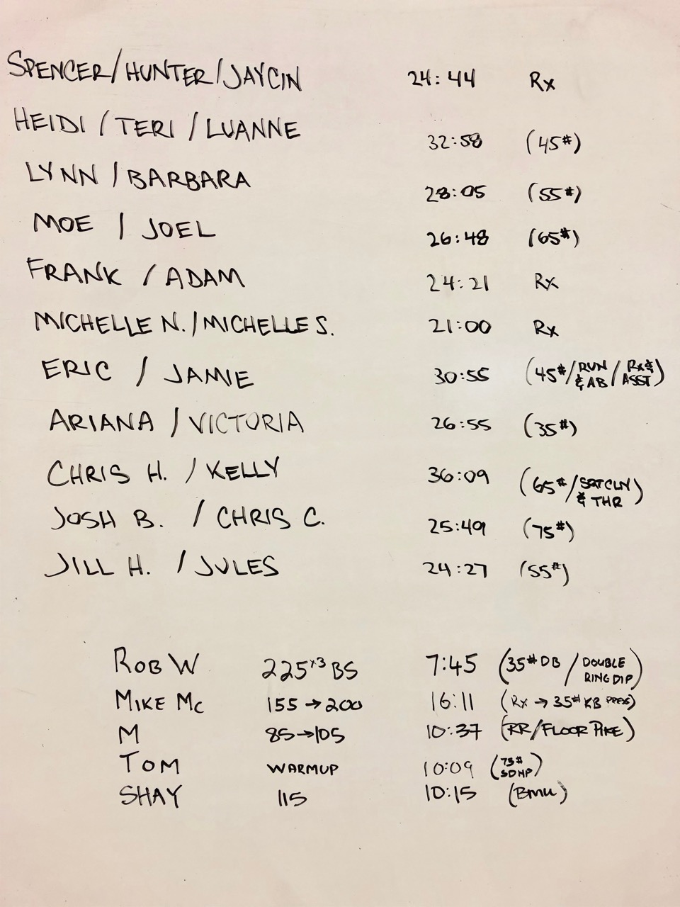 Advanced RX: EMOM for 7 mins: Squat Clean Thruster & FT: Thrusters, Muscle-ups and Handstand Push-ups
