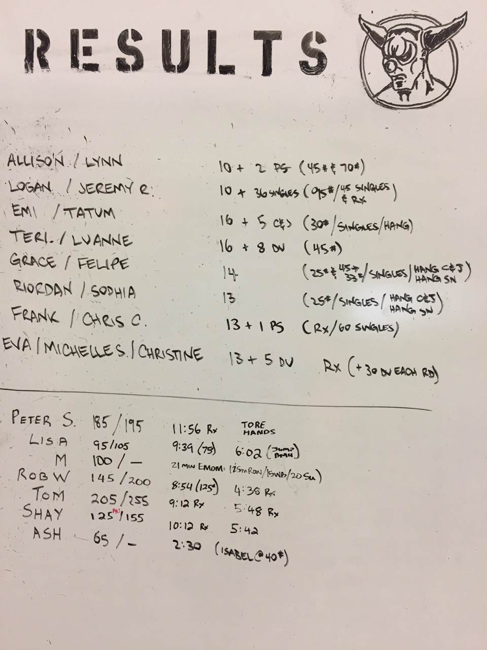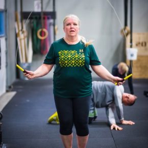 Team WOD: AMRAP 16 mins: Power Clean & Jerks, Double Unders and Power Snatches