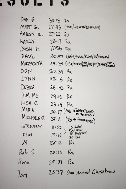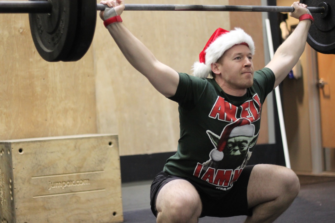 Big turnout for Monday’s Feats of Strength. Almost all of you managed to fall into the rhythm of the “12 WOD’s of Christmas”. The first five exercises are meant to be a “barbell complex” where the sequence of movements progress together. It pushes you to be more efficient and “link” them so that after you complete the Deadlifts you transition to the Power Cleans then the Push Presses, Thrusters, and Sumo Deadlift High-Pull without putting the barbell down. There are endless combinations to this type of 12 Days workout but this one keeps both the reps of each movement and load reasonable.