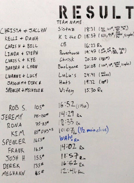 Double unders are scaled triple unders, MU are scaled weighted MU, 15′ rope climbs are scaled 20′ climbs.