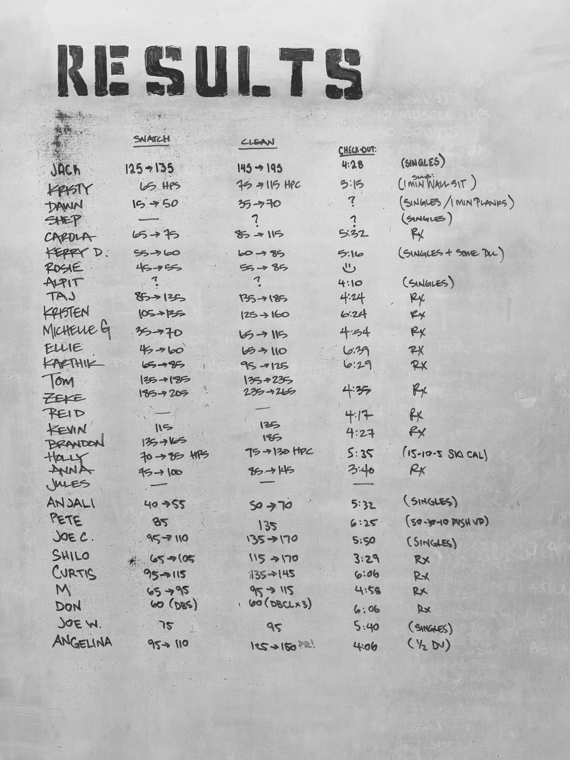 Every 1:30 for 30 mins: Snatches and CleansEvery 1:30 for 30 mins, alternating between: