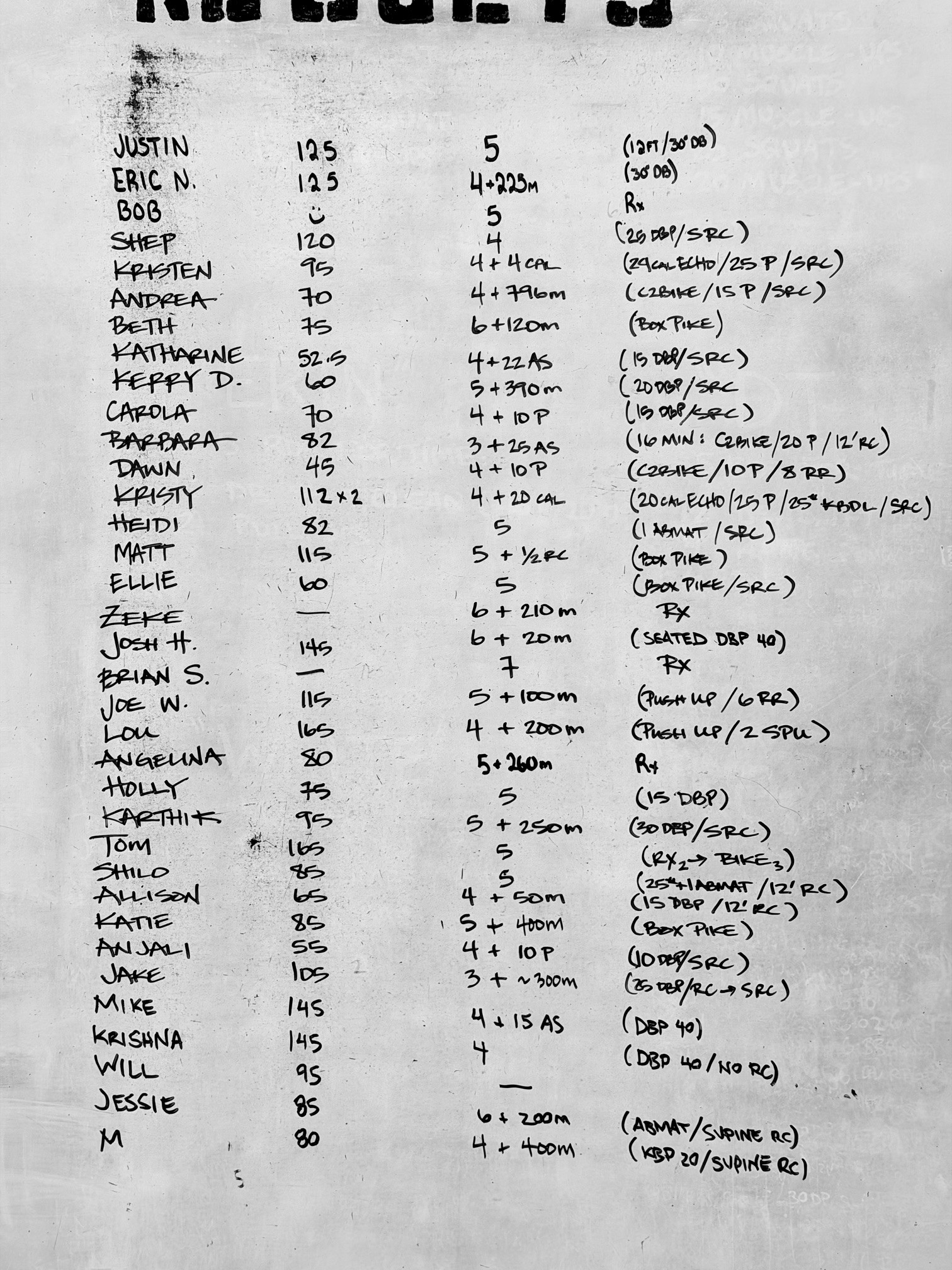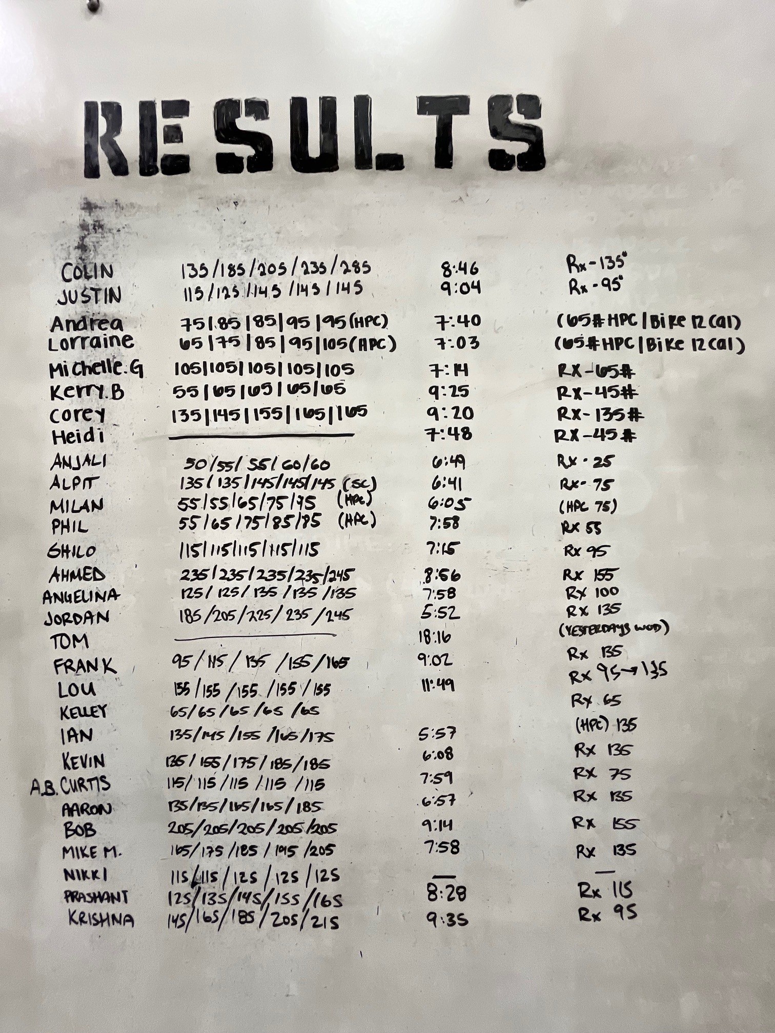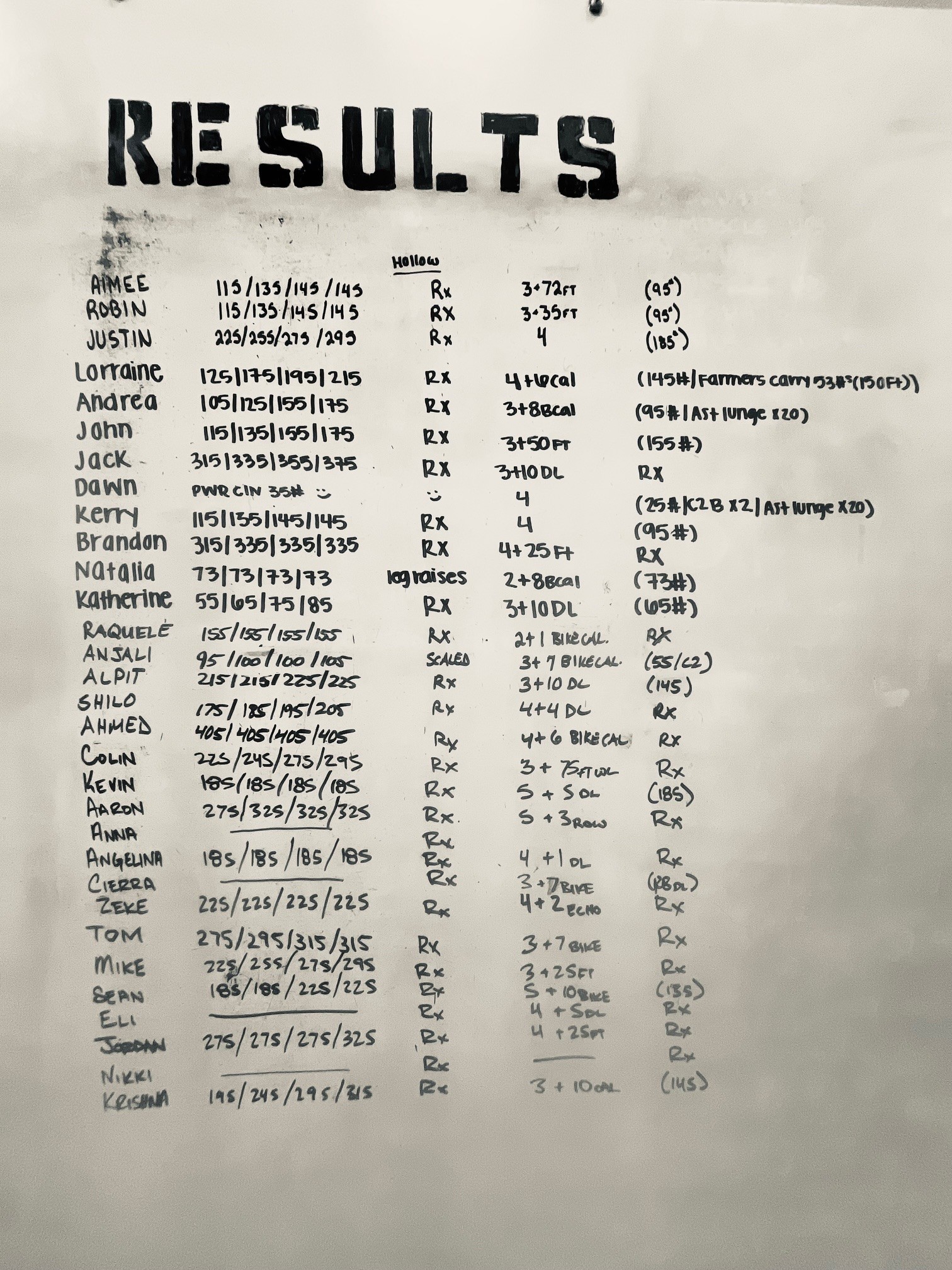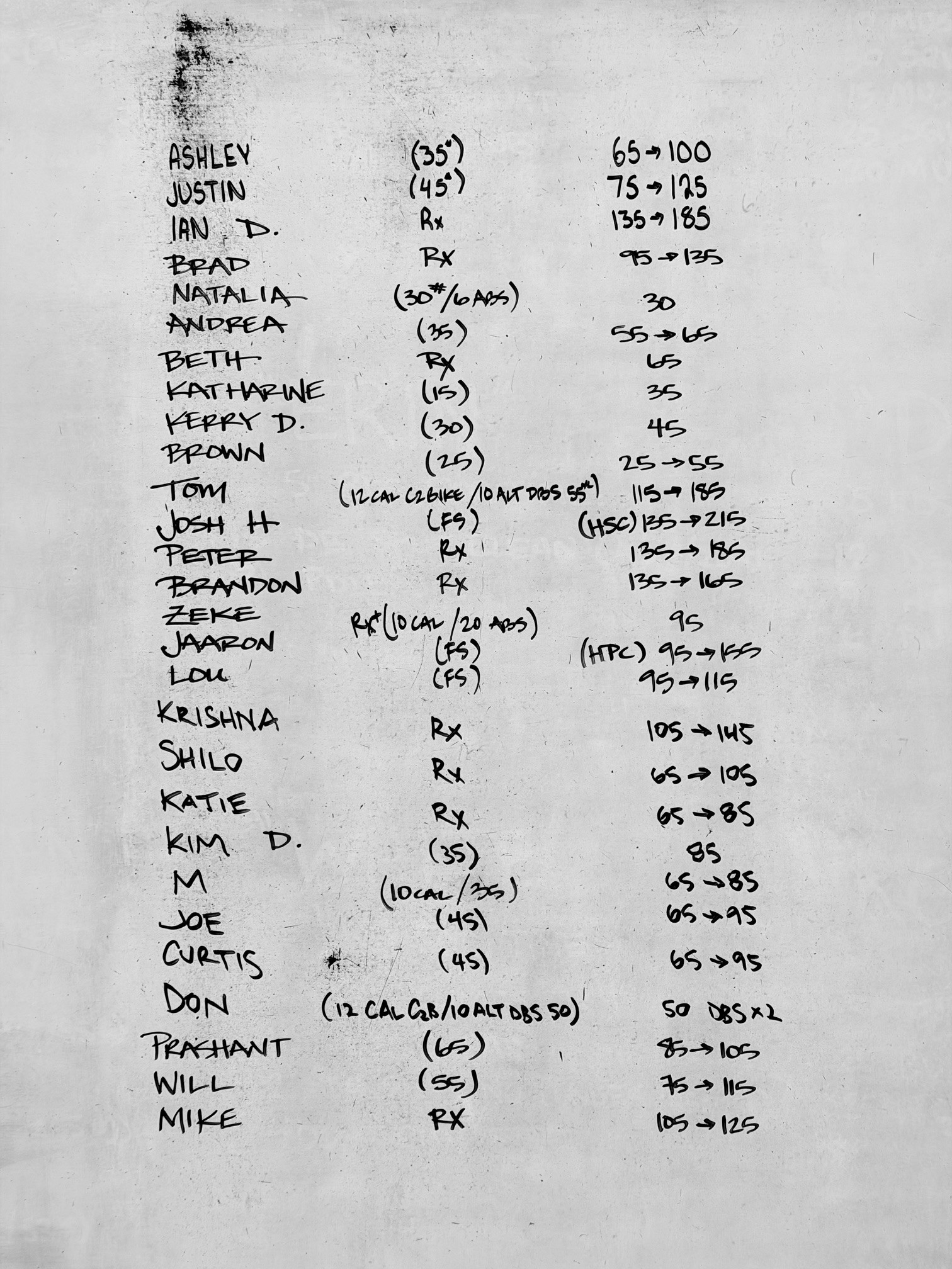 Team WOD: AMRAP 16 mins: Clean & Jerks, Burpees, and Front Squats