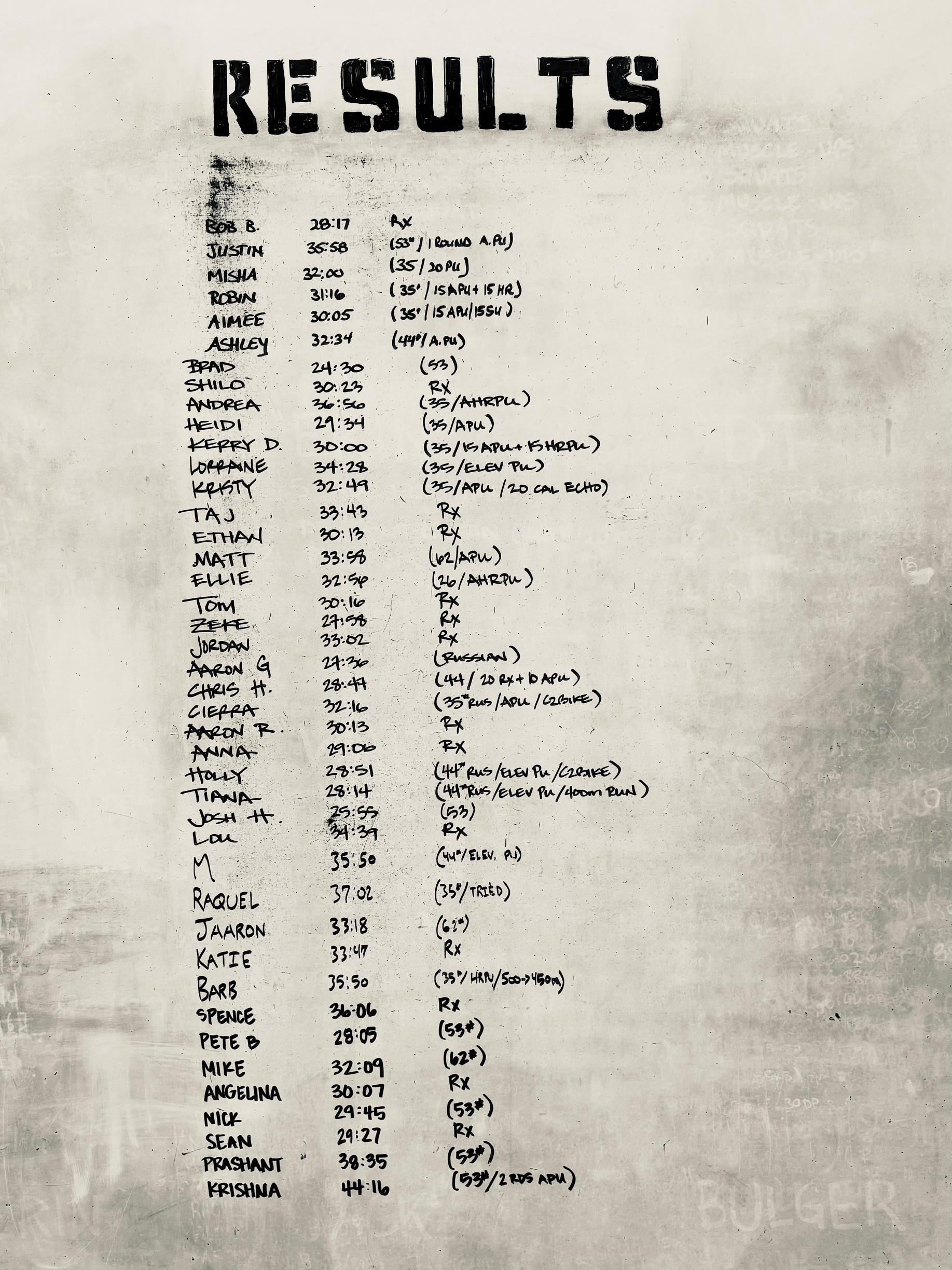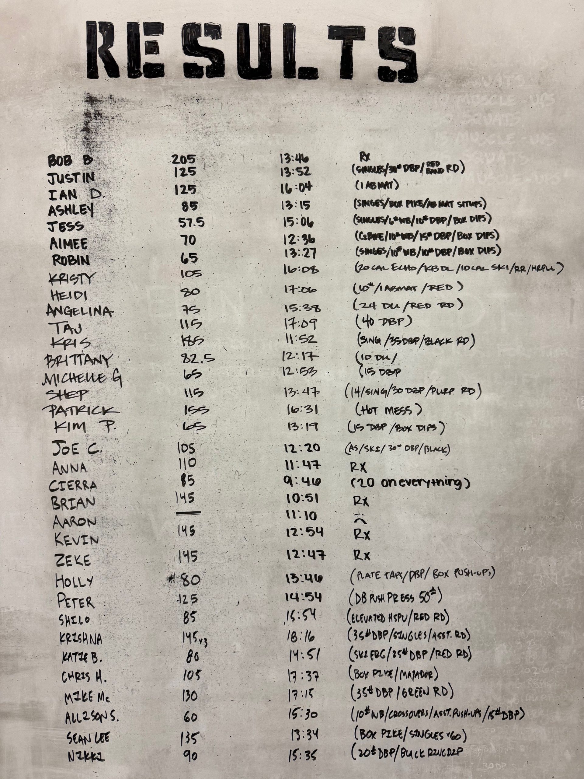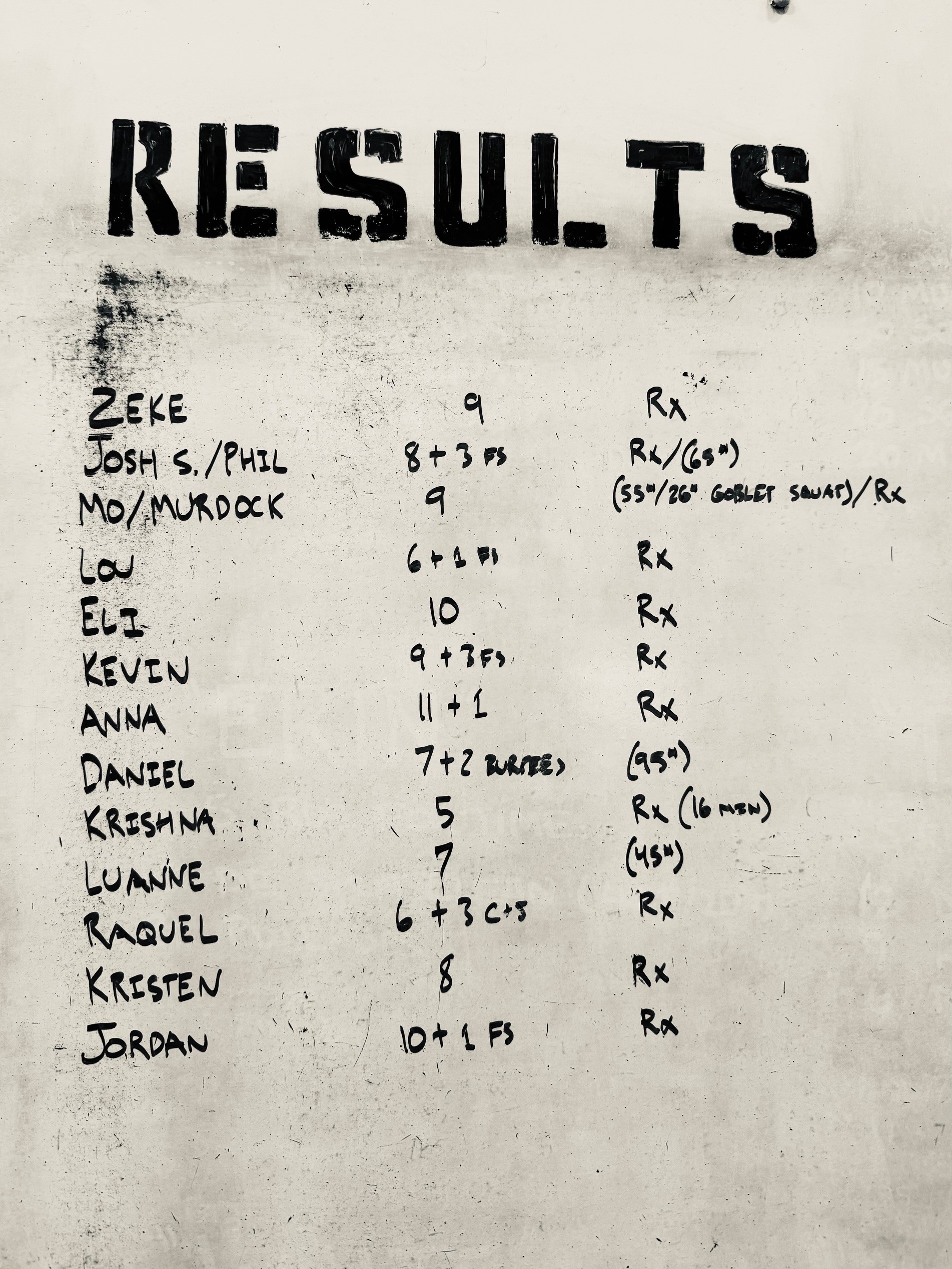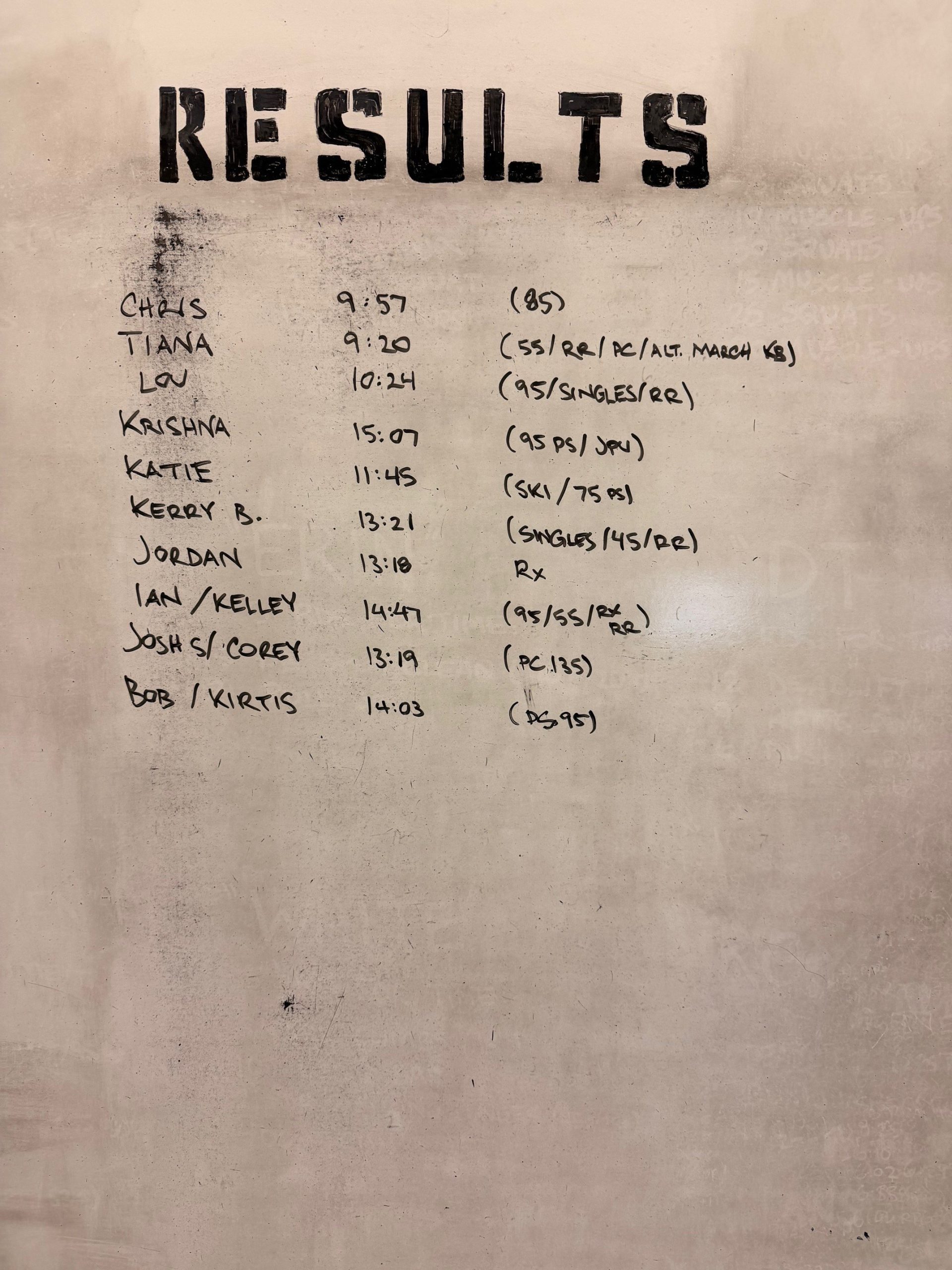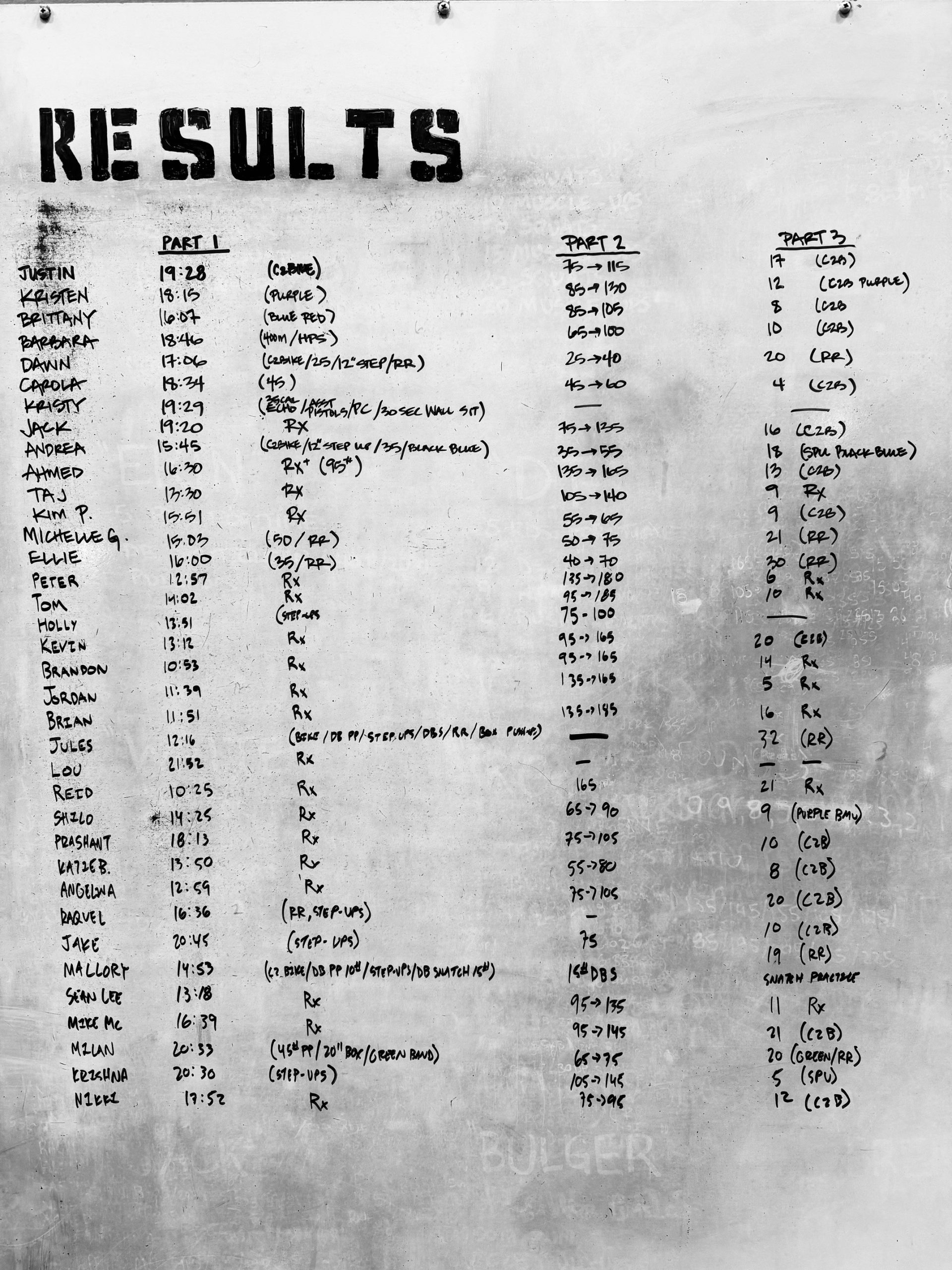 Team WOD: AMRAP 16 mins: Clean & Jerks, Burpees, and Front Squats