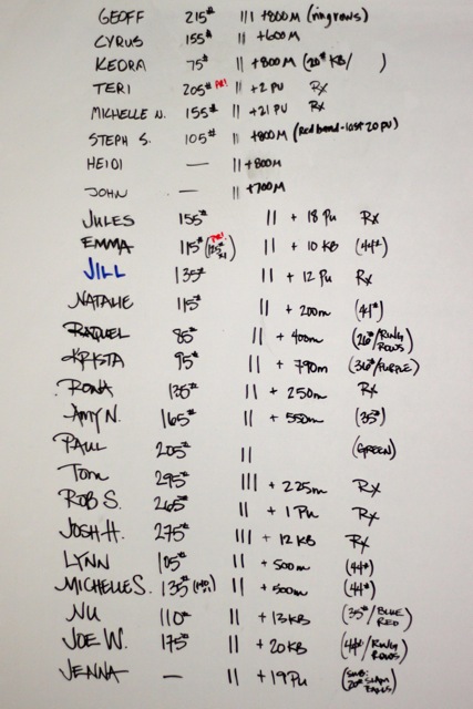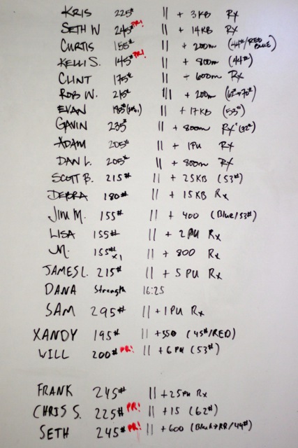 If you want to know why I have never programmed the benchmark “Eva” for the entire gym then just imagine doing 5 rounds of today’s WOD. It’s horrible, takes forever, wrecks the hands, and really ruins you for the rest of the week. Not good training.