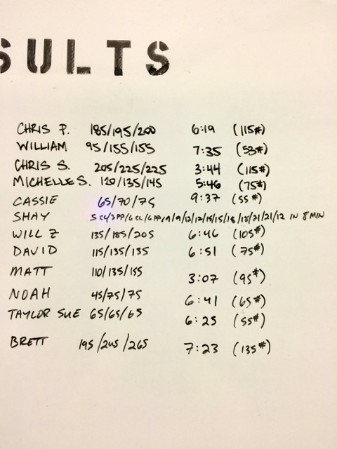 In this workout, we are using a special tiebreak method. Time should be marked after every third set of cleans (the last set before increasing the clean reps), i.e., after the third set of 3 cleans, after the third set of 6 cleans, after the third set of 9 cleans, etc. Whichever occurred last will be your tiebreak score.