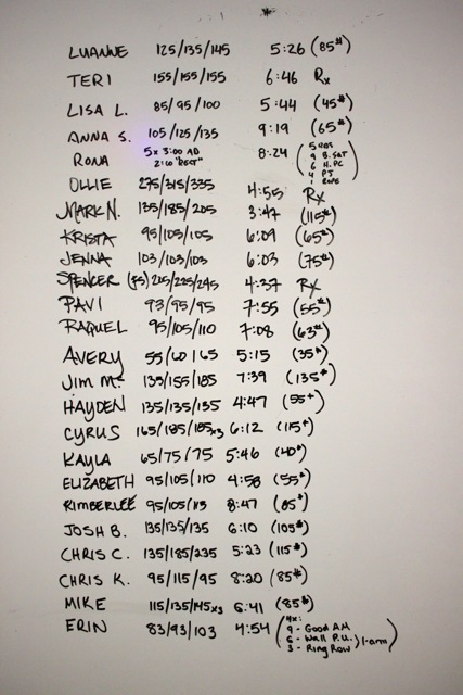 9 Hang Power Cleans 155/105 lbs
