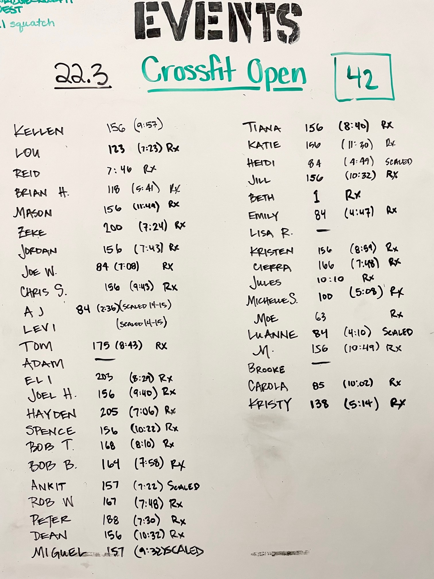 – Teens 14-15 RX will do same gymnastics movements and DU and use 65/45 85/55 105/65