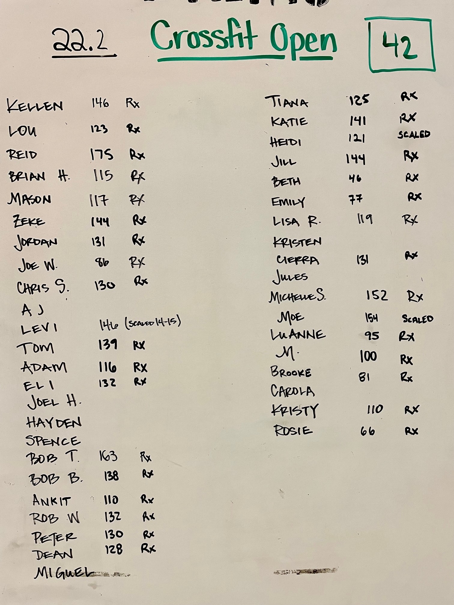 * Athlete will have a straight line on the floor with the barbell on the center of that line. Line is for burpees.