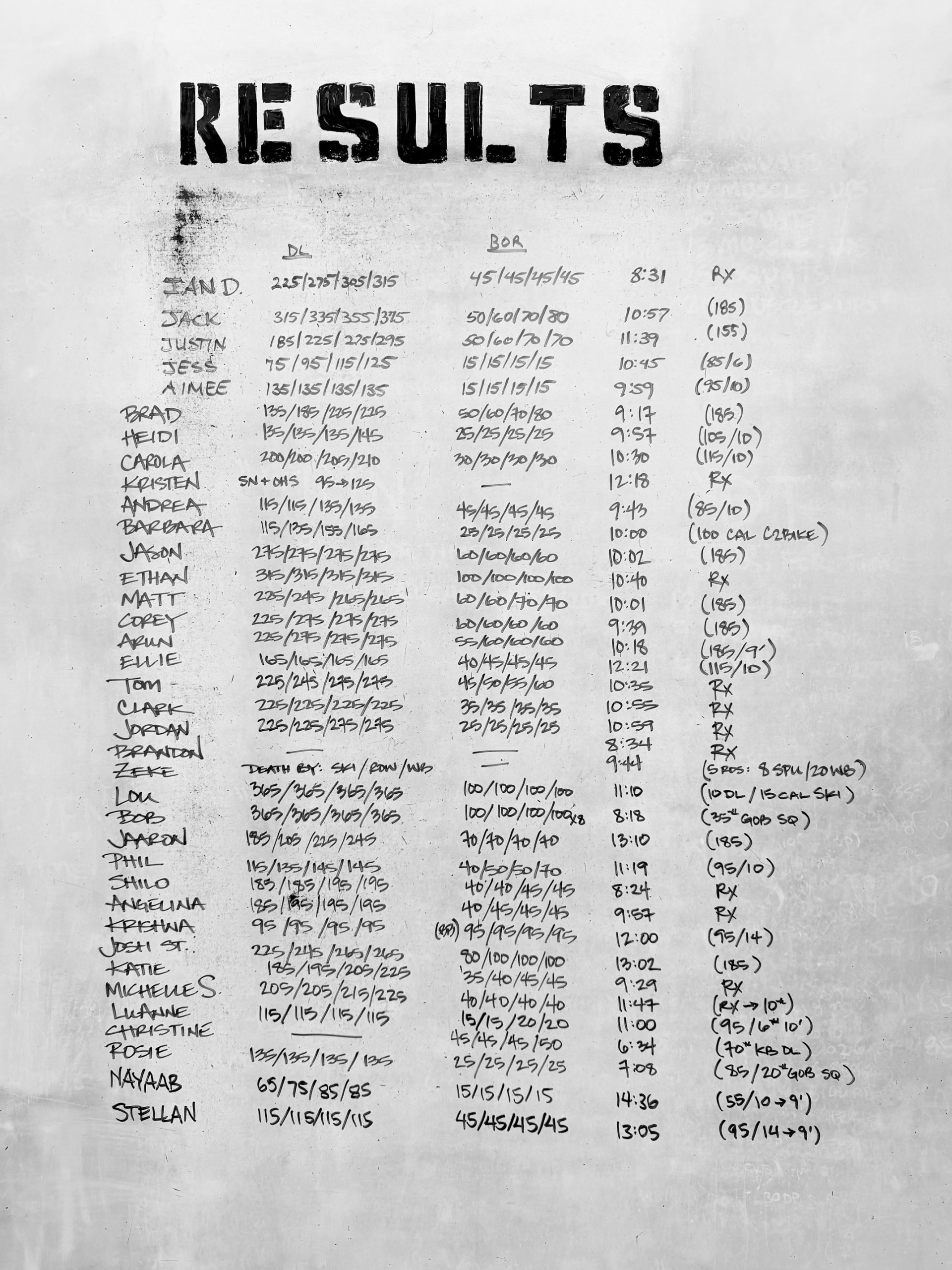 Team WOD: AMRAP 20 mins: Rows, Double Unders, and Alt DB SnatchComplete as many rounds as possible in 20 mins of: