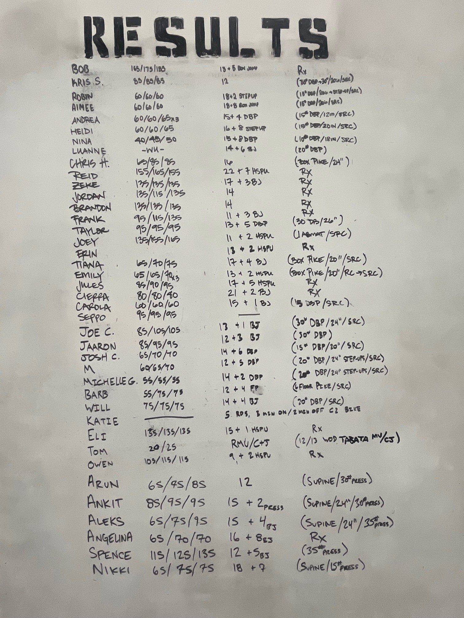 - 12/23: Monday “12 WOD’s of Christmas” annual workout at all classes