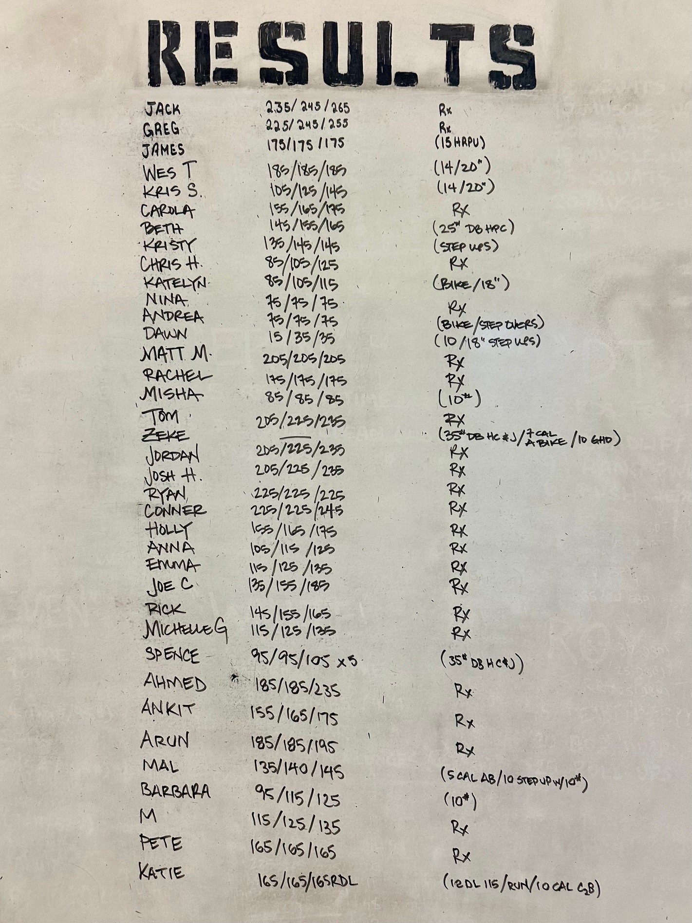 Team WOD: Chipper: Partner Runs, Front Squats, Hand Release Push-ups, KB Swings