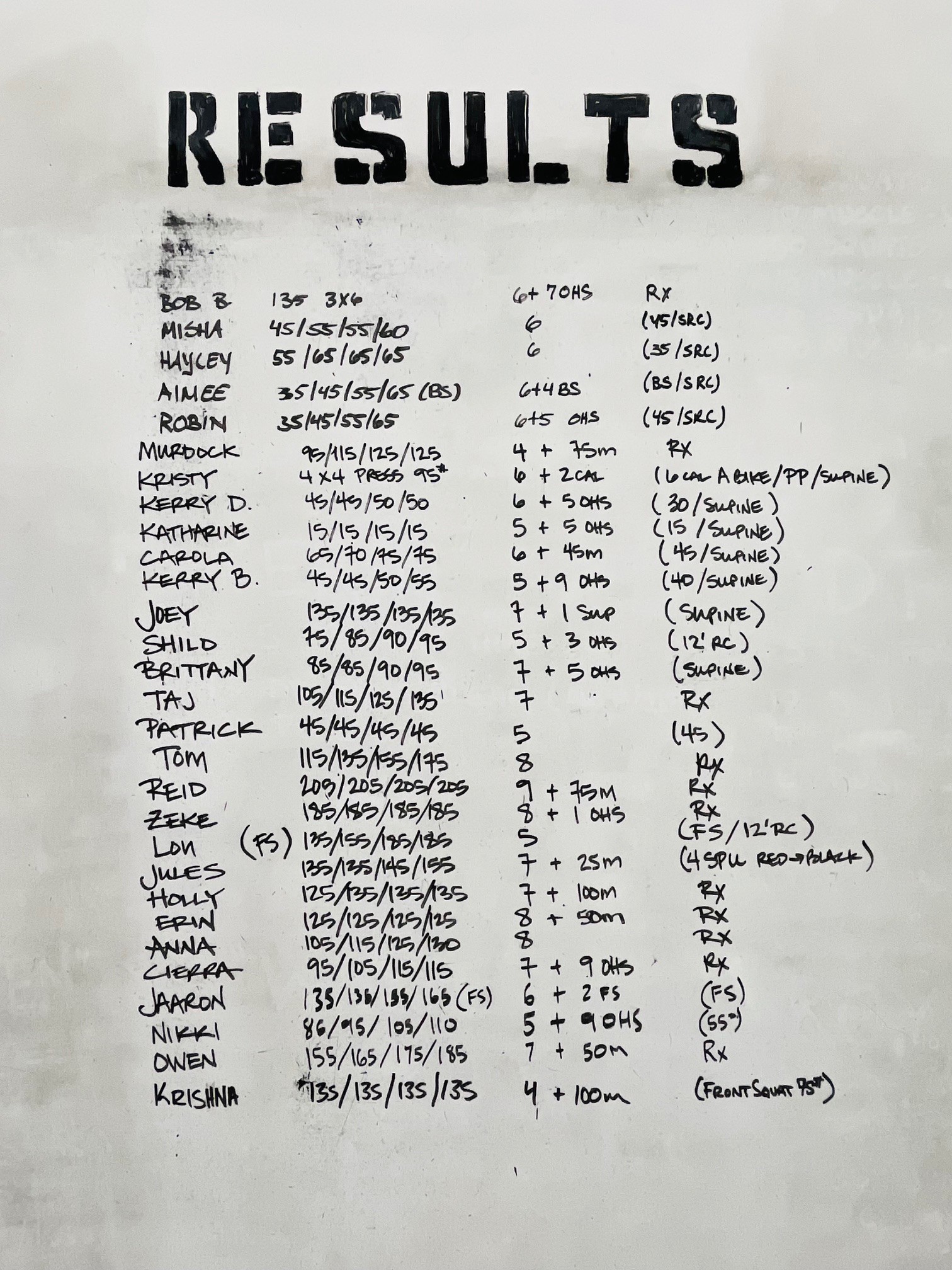 Team WOD: FT: Rows, Hang Power Snatches, Pull-ups