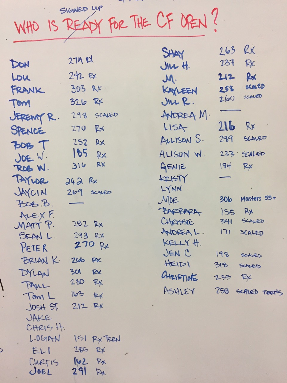 CF Games Open Team SnoRidge CrossFit Roster Count: 28