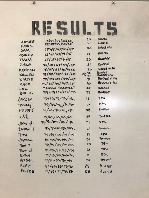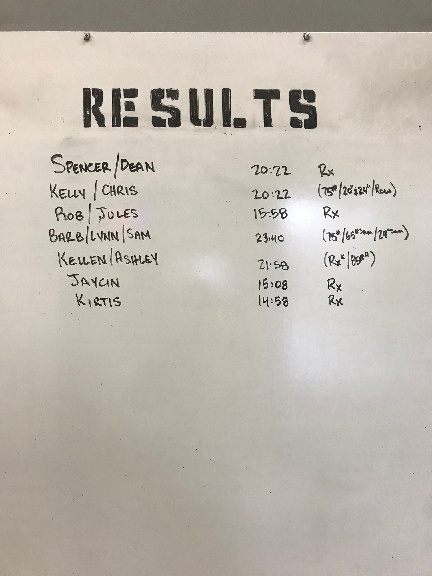 Team WOD: AMRAP 21 mins: Sprint, Hang Power Cleans, Push Press, and Double Unders