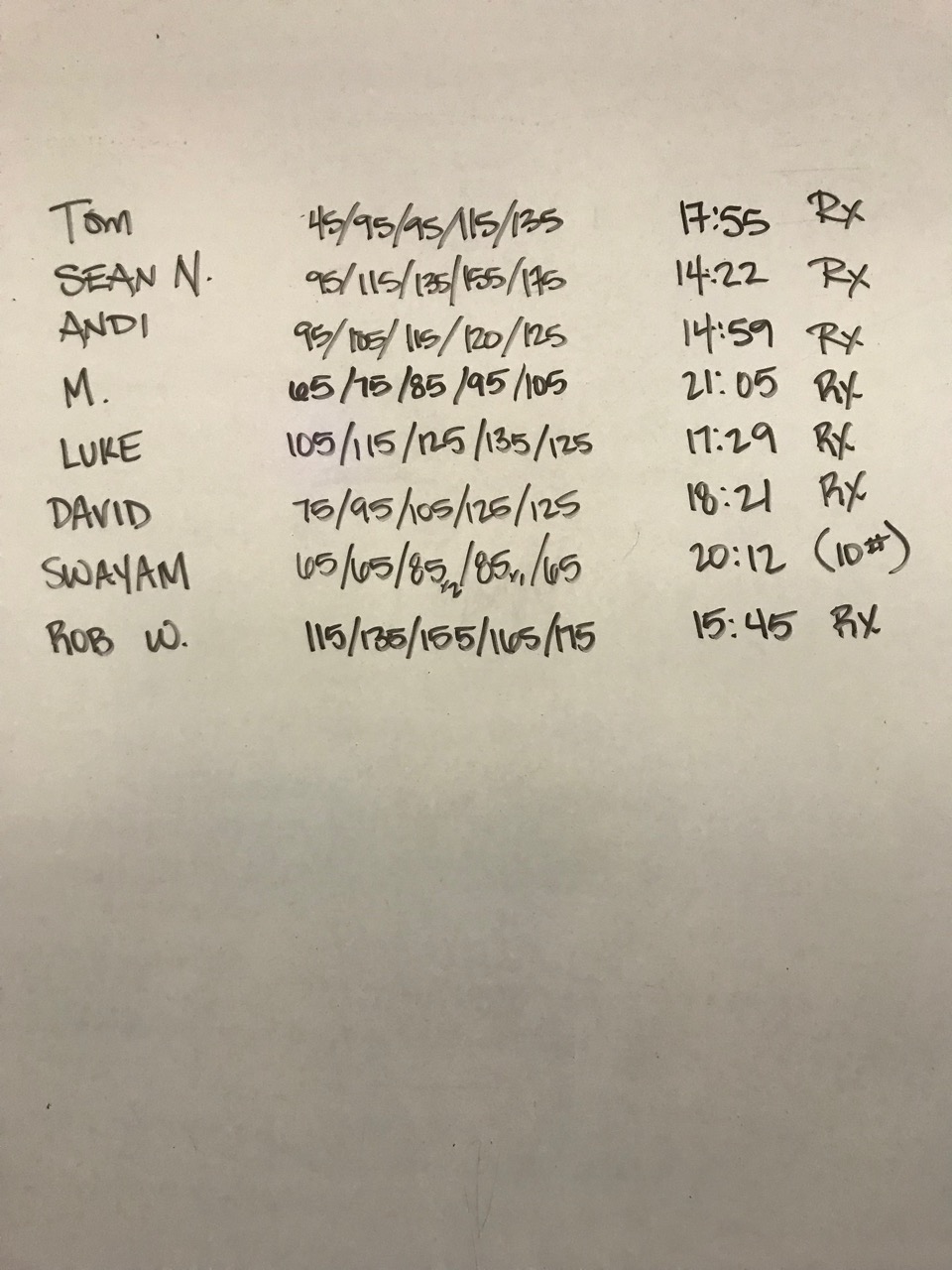 Team WOD: Chipper: Row, Kettlebell Swings, Double Unders and Overhead Squats