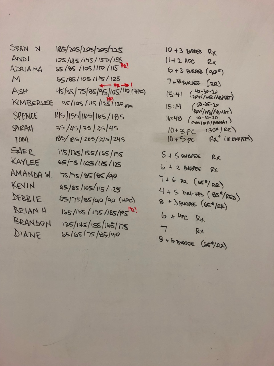 Hang Power Clean & Jerk 2-2-1-1-1 & AMRAP 15 mins: Hang Power Cleans, Pull-ups and Burpees