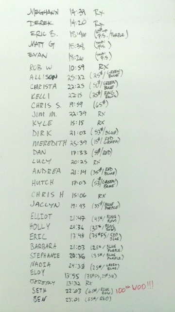 * One bar. Alternate each round with your partner. Sub 2 Supine Rope Climbs to 1 Rope Climb.