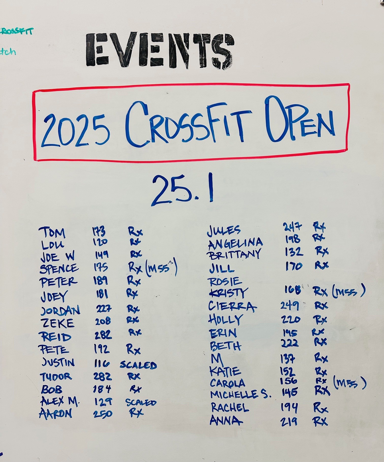 Make sure you enter your weekly score to the CF Games site Monday by 5pm PST!