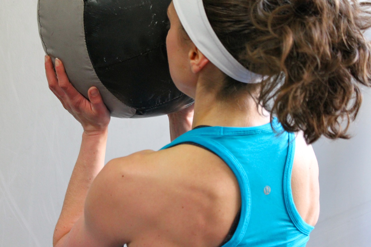 Michelle’s Open WOD training tip of the day: “When throwing balls, try cupping the bottom instead of the sides to save your grip.”