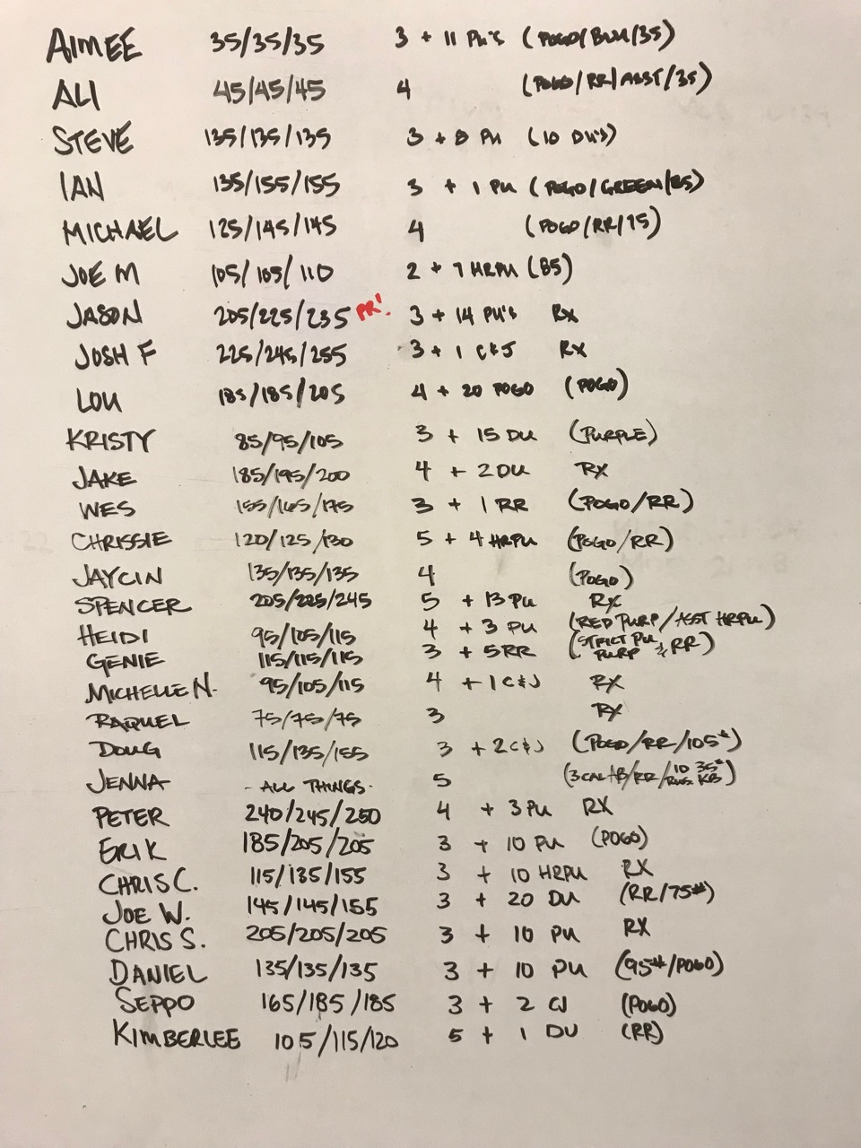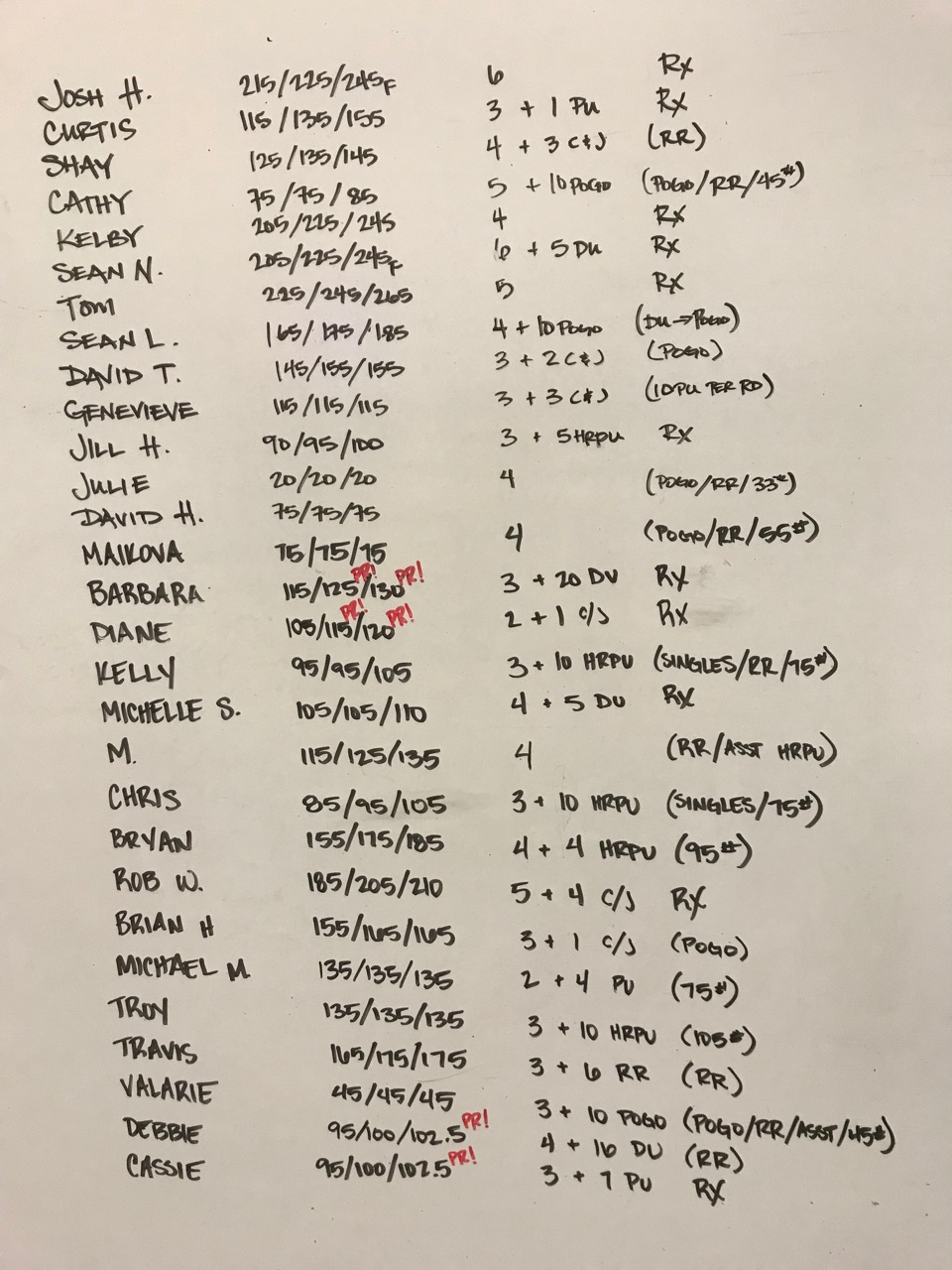 AMRAP 12 mins: Double Unders, Pull-ups, Hand Release Push-ups and Clean & Jerks
