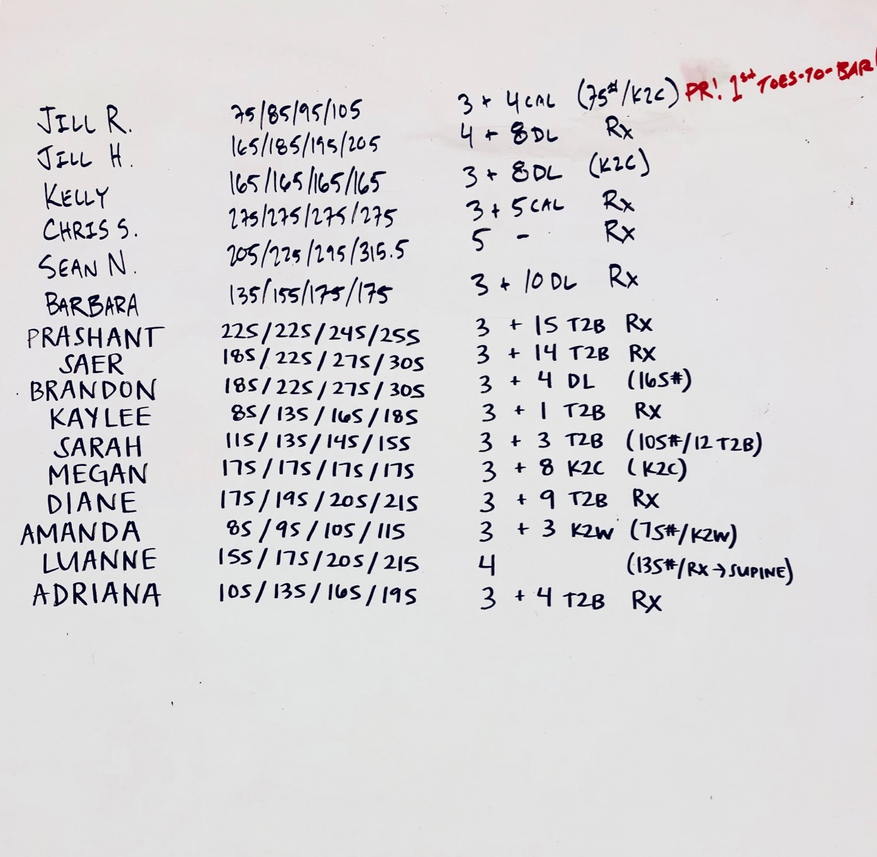 AMRAP 14 mins: Deadlifts, Toes-to-bars and Row