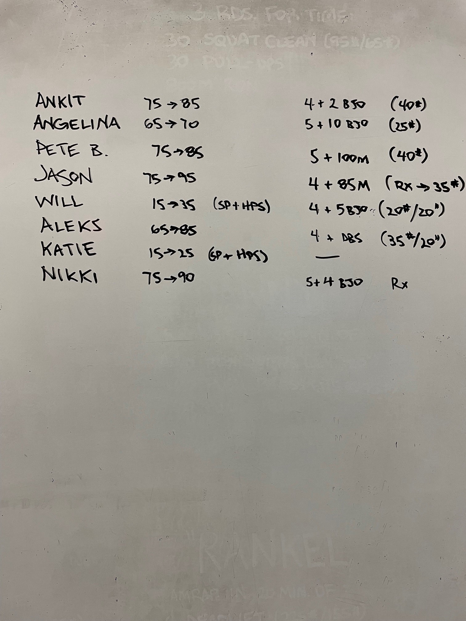 1 Snatch Pull + Hang Squat Snatch, pick load