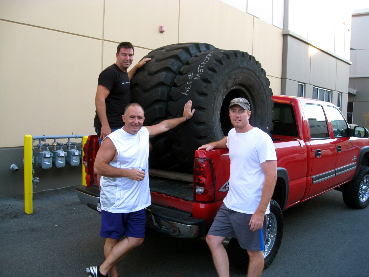 We also had local Ridge resident Aaron try his first WOD and had two CrossFitters from Outer Edge CrossFit (Steve and Sherry) drop in for a WOD after dropping off our new tires (pictured below). Can’t wait to play with these…