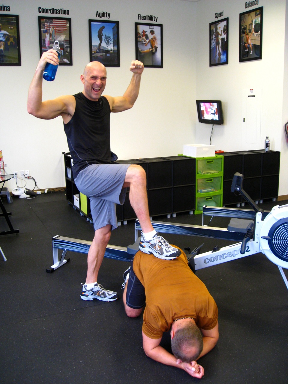 What do your coaches do on weekends when we are bored? Check out Michelle learning to use the new slosh pipe. Many attempts interrupted with much laughter. It will make an appearance soon.