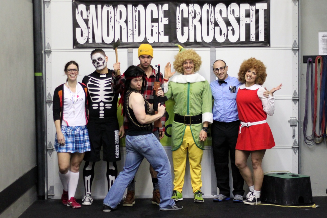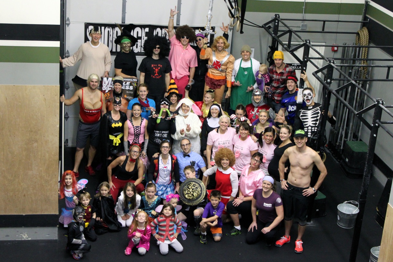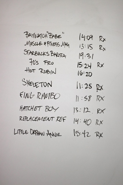 The Frankenchipper is a combination of benchmark “Girls” WOD’s. Like Frankenstein it’s part “Helen”, “Nancy”, “Karen”, “Cindy”, and Filthy Fifty. This WOD is a quick gasser that’s light but challenging. More so when you have a costume on. We had a big crowd of 5 waves all in costumes and ready to rock on Saturday. We even had two clones of Michelle and I that were spot on!
