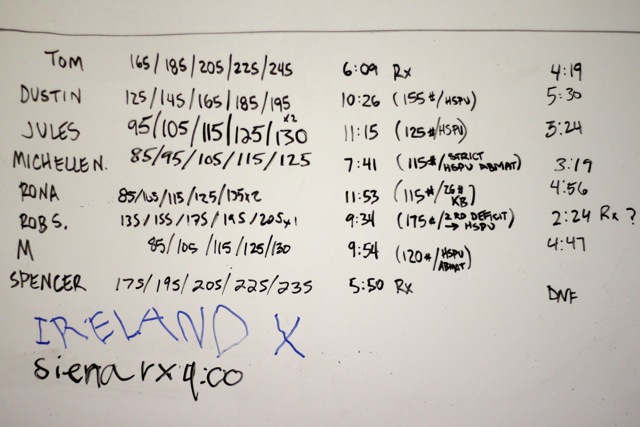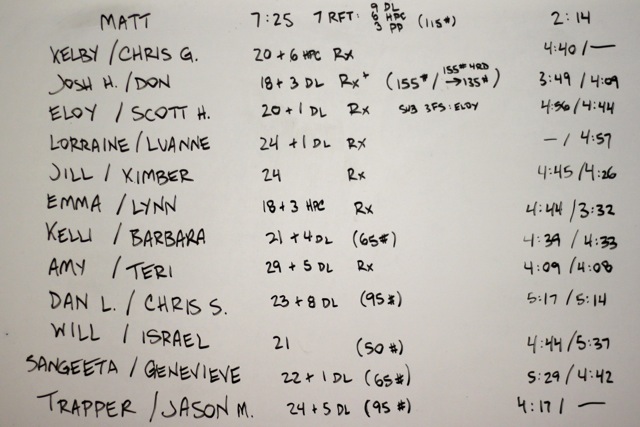 * Partner up. Partner 1 completes 1 round then switches with Partner 2. Alternate back and forth. Score total rounds.