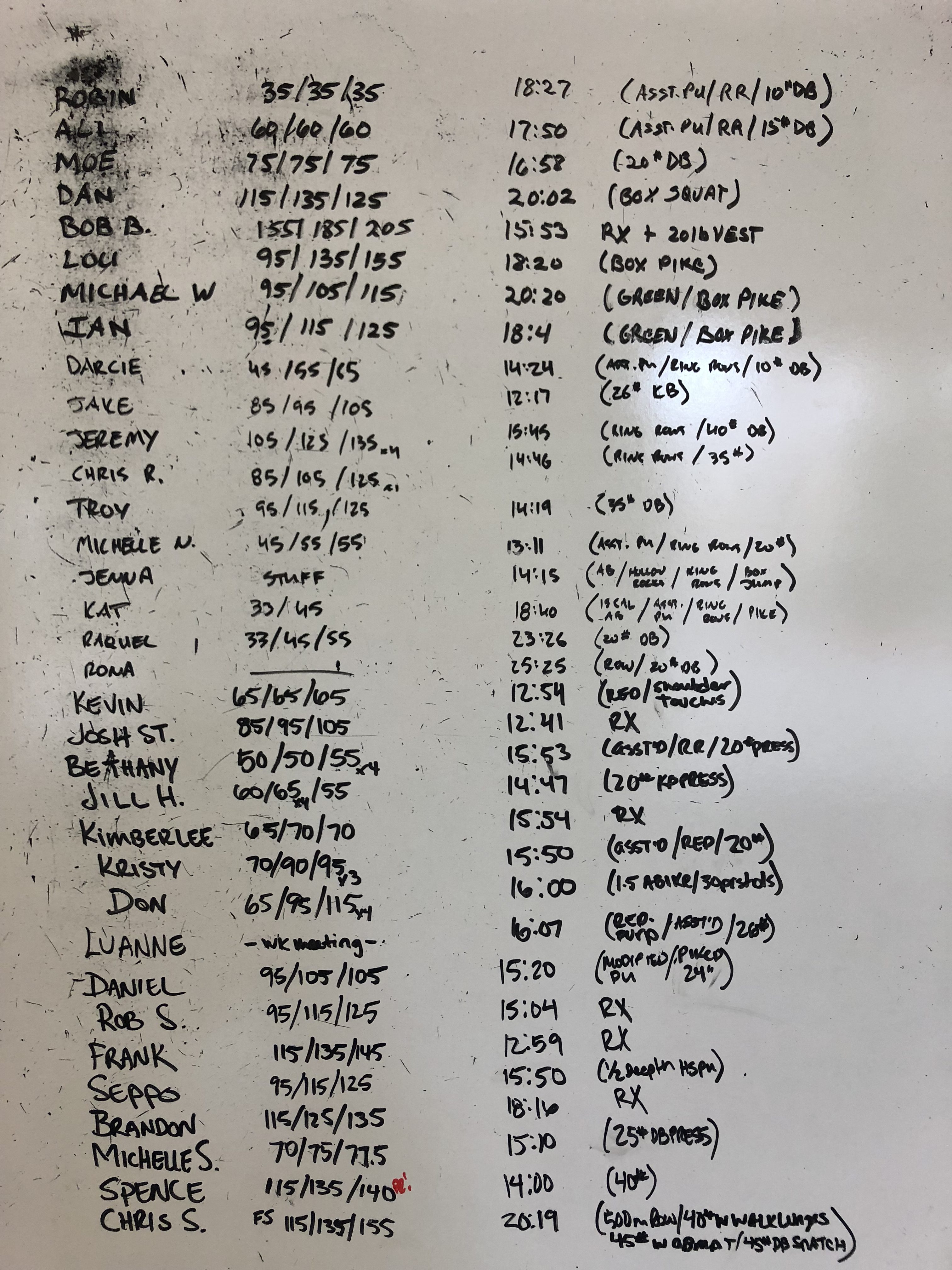 Chipper: Runs, Air Squats, Push-ups, Pull-ups and HSPU