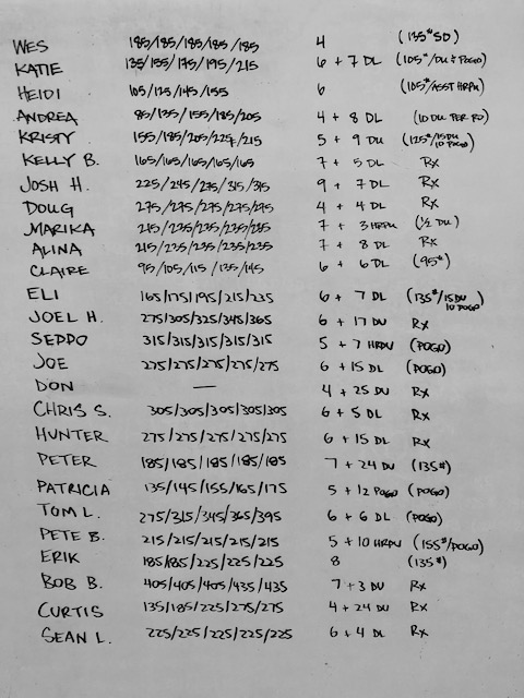 AMRAP 15 mins: Deadlifts, Double Unders and Push-up (hand release)