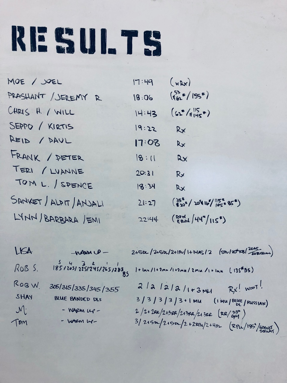 Team WOD: 3 RFT: Partner Runs, Kettlebell Swings, Box Jump Overs and Deadlifts