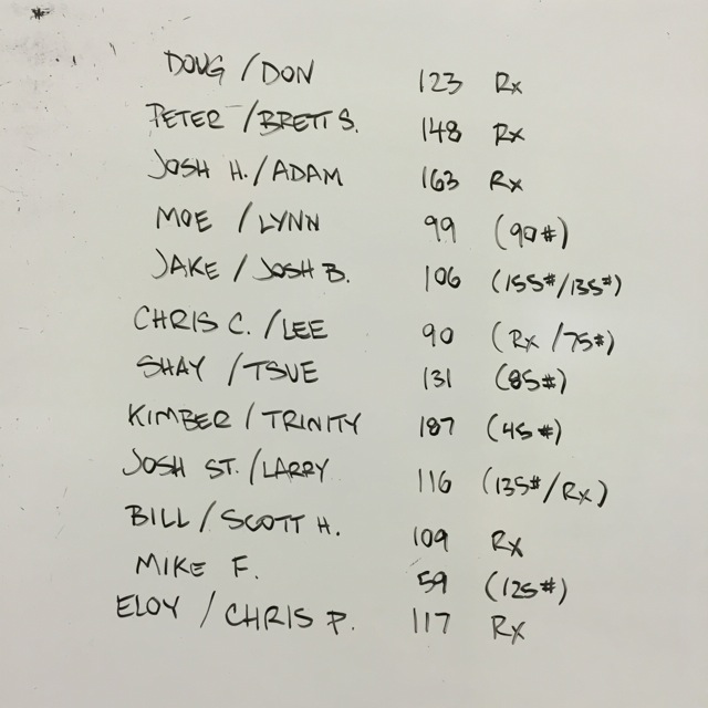 With the time remaining max rep Power Cleans (155#/105#) as possible
